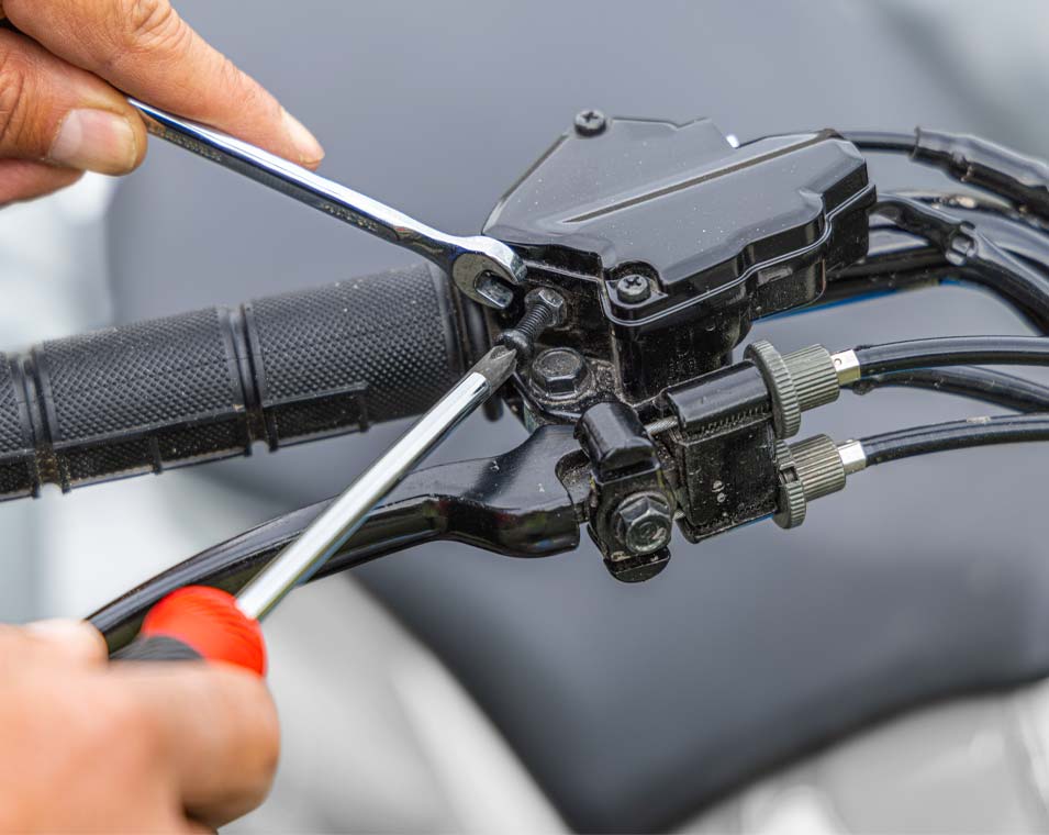 Acionamento por manete única no guiador, com bloqueio mecânico