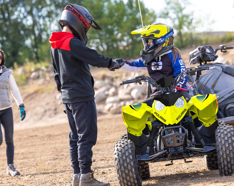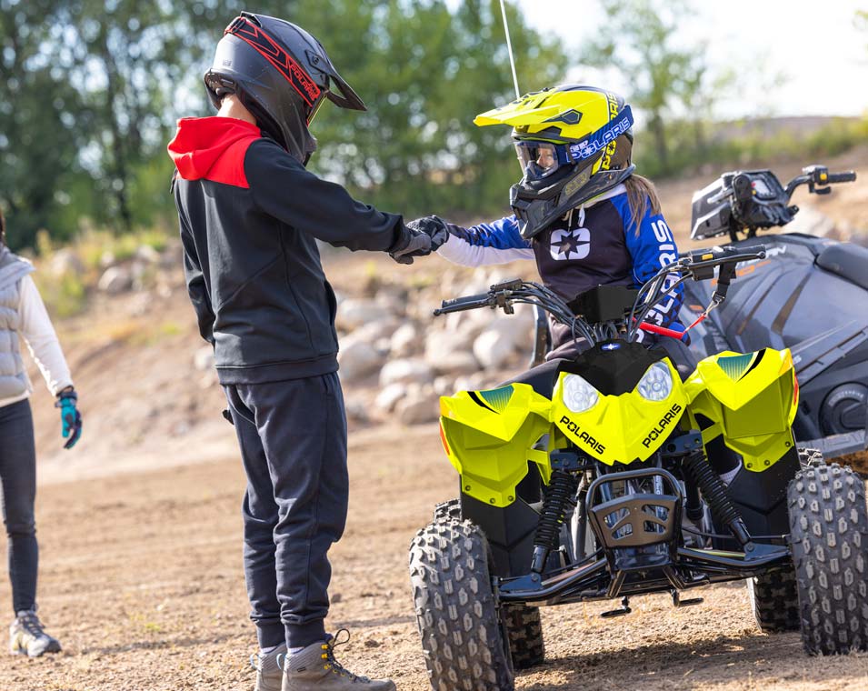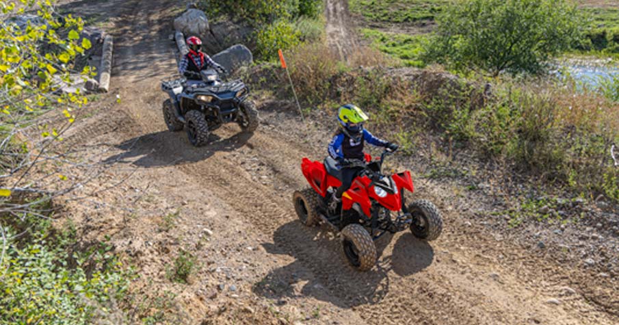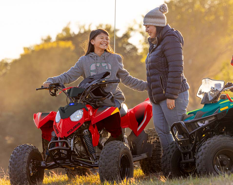 Com um motor EFI de 110 cc e acessórios para permitir aos jovens utilizadores crescerem com o seu ATV. Fabricado para utilizadores com 10 ou mais anos de idade.