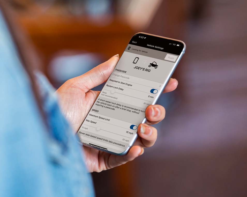 - Youth RIDE CONTROL que permite geo-fencing, limitação de velocidade e monitorização de localização.